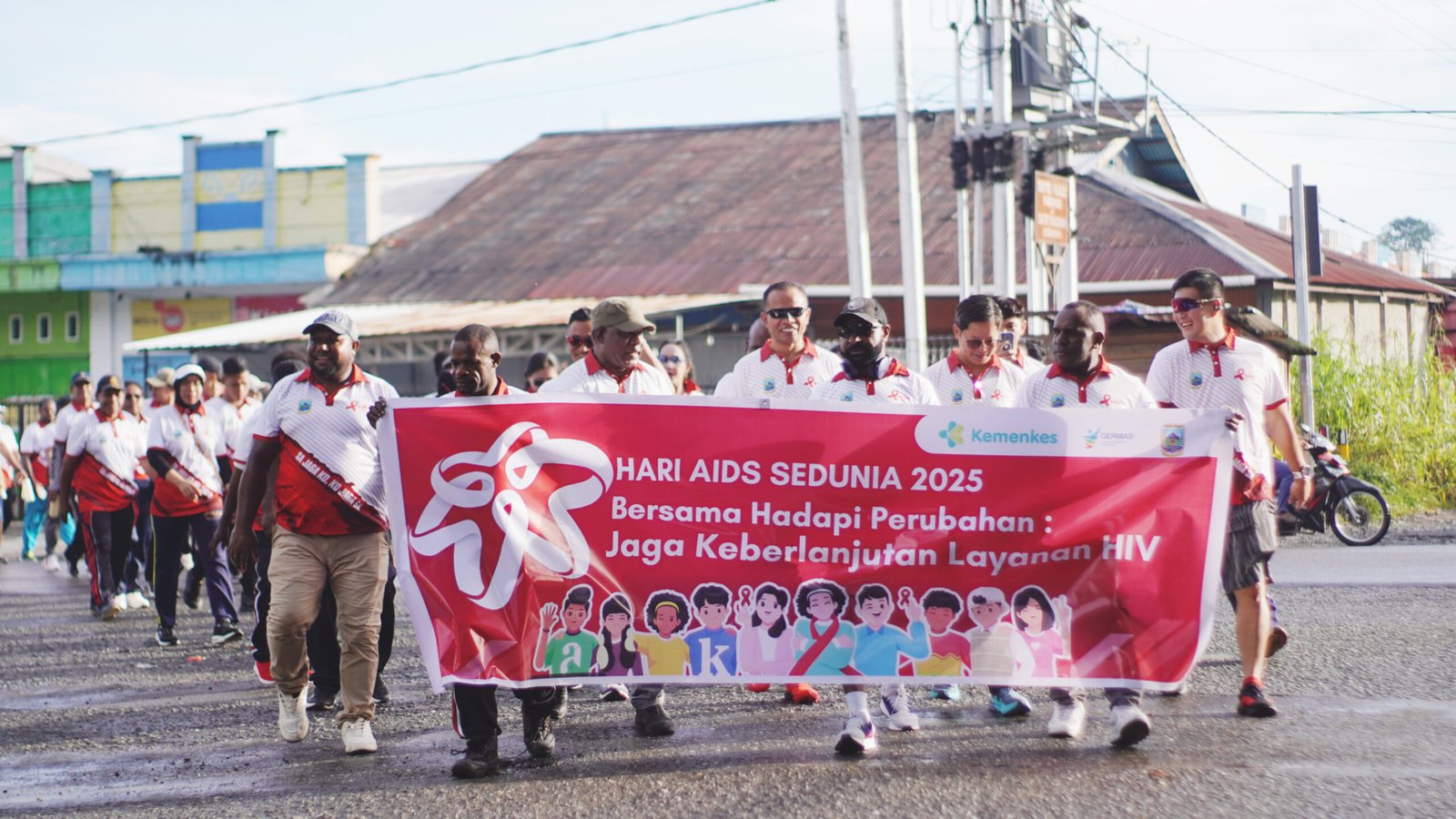 Suasana jalan santai memperingati hari AIDS sedunia di Nabire, Papua Tengah, Sabtu (6/12/2025). Foto: Kristin Rejang/sasagupapua.com Perbesar