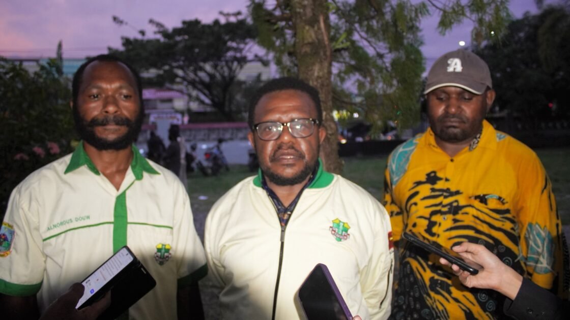 Dari kiri, Wakil Ketua Bidang Ekonomi DPP Pemuda Katolik, Arnoldus Douw, Ketua Panitia Rakerda, Hendrikus Yeimo, dan Abeth A. You selaku Departemen Gugus Tugas Papua Pengurus Pusat Pemuda Katolik Periode 2024-2027. (Foto: Kristin Rejang/Sasagupapua.com)