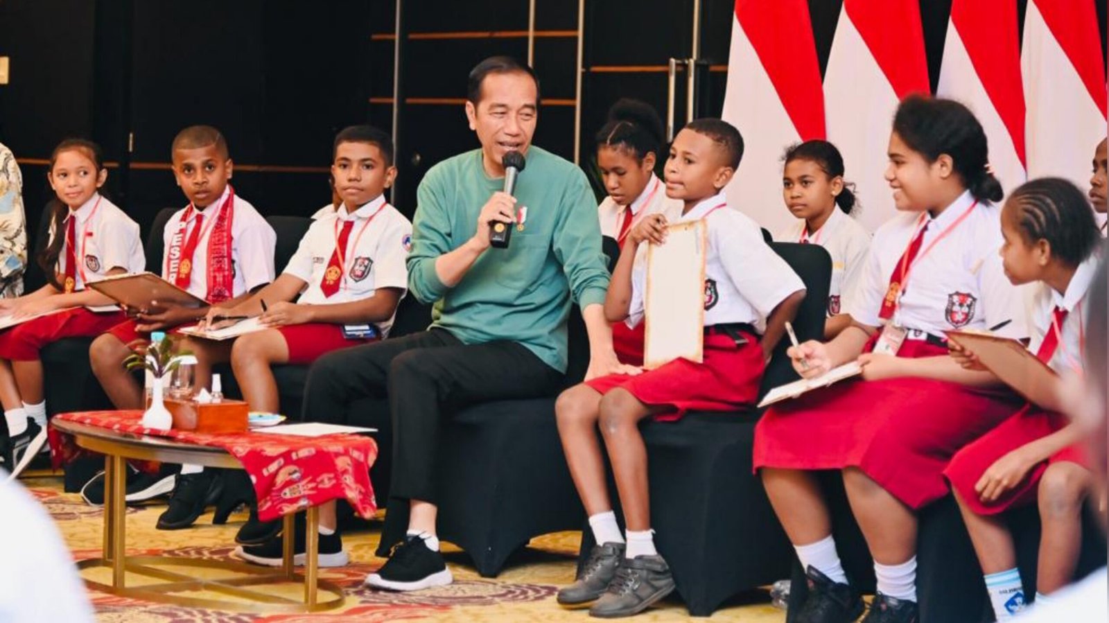 Presiden Jokowi saat bertemu dengan anak-anak pelajar Papua di Kota Jayapura, Papua, Jumat (7/7/2023). Foto: Setkab.go.id