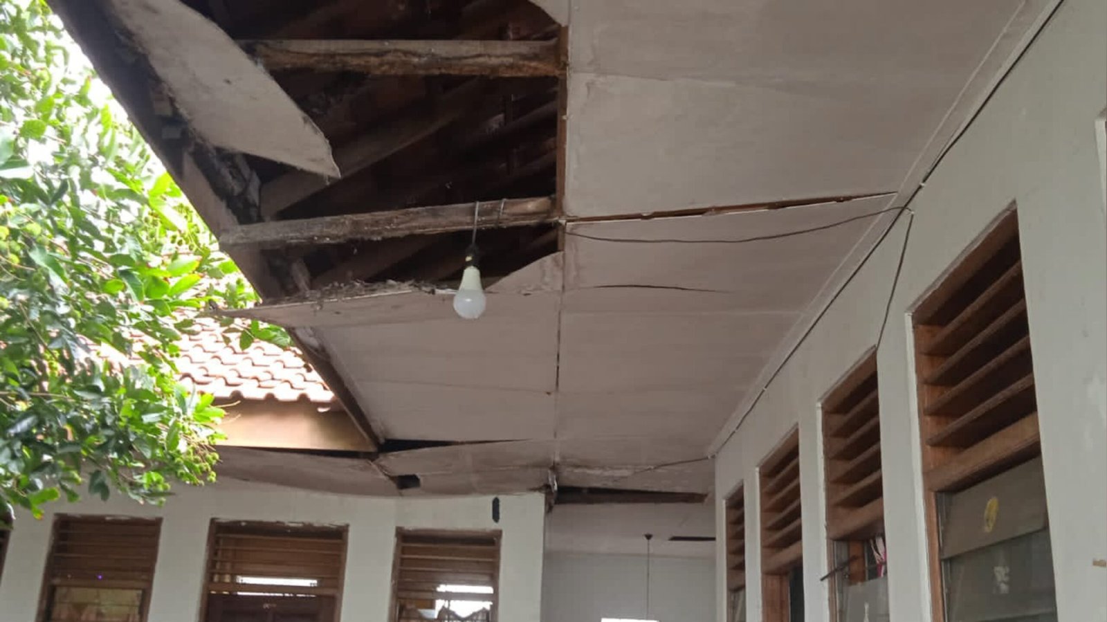 “Atap genteng di beberapa kamar juga bocor, plafon rusak karena kayunya sudah lapuk akibatnya buku-buku juga rusak. Kondisi ini sudah lama terjadi,” ujarnya.