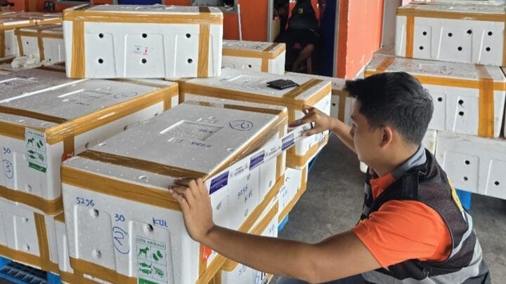 Seorang petugas sedang mempersiapkan Karaka milik pengusaha UMKM yang akan mengirimkan produk Kepiting ke luar negeri. (Foto: Istimewa)