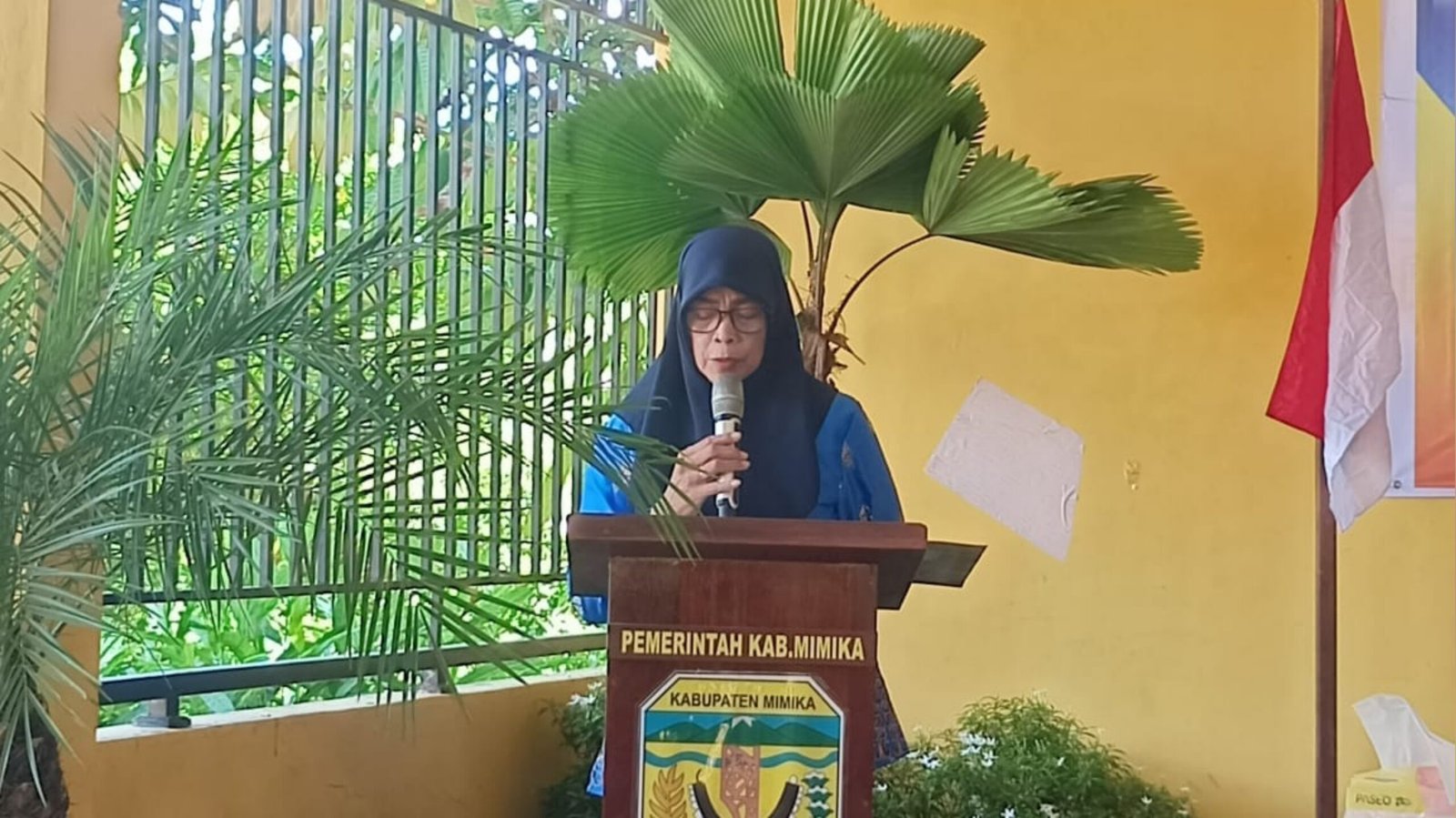 7. Kepala Distrik Iwaka, Linus Dolame saat membawakan sambutan.