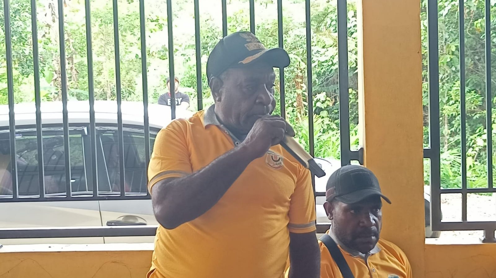 6. Ketua Panitia Musrenbang, Sagiem saat membawakan laporan panitia dalam kegiatan Musrenbang Distrik Iwaka.