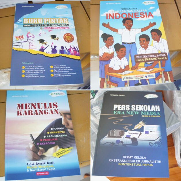 Keempat buku yang diperkenalkan meliputi Bahasa dan Sastra Indonesia Kontekstual Papua untuk SMA/SMK Kelas X, Pers Sekolah Era New Media: Teori dan Praktik, Menulis Karangan Kontekstual: Dari Kehidupan Siswa Papua untuk Pembelajaran yang Bermakna, serta Pintar Memilih Perguruan Tinggi dan Akses Beasiswa.