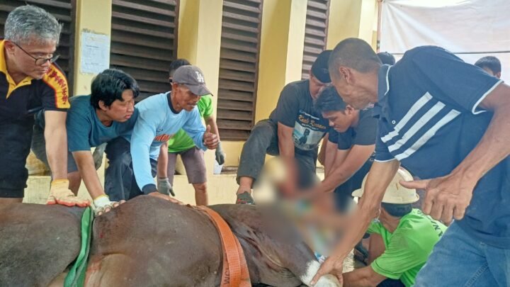 Momen ketika Afdol Rozak Setiawan bersama dengan tim sedang menyembelih hewan kurban. Foto: Kristin Rejang/Sasagupapua.com