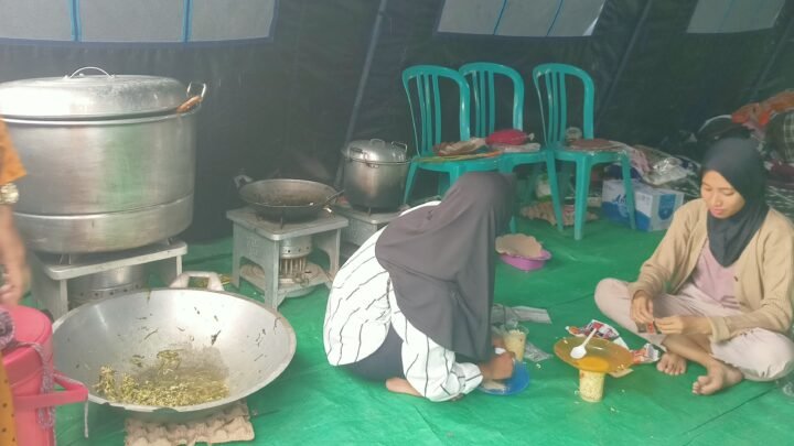 Sejak Jumat, 7 Juni 2024 sore sebagian dari warga yang terdampak tidur didalam dua tenda yang dibangun oleh Dinas Sosial. Mereka masak bersama didalam tenda. “Hari ini kami makan mi rebus, ini tempat masak (sambil menunjuk), kami masak disini,” ujar salah seorang korban kebakaran.