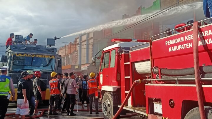 Api juga menghanguskan beberapa toko yang ada di depan Bank Papua, Jalan Yos Sudarso Timika.