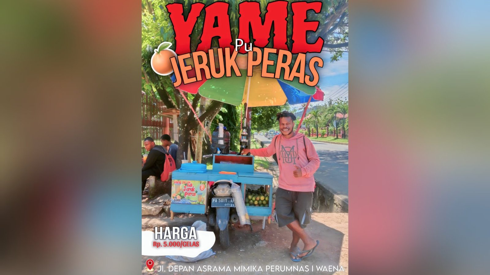 Saat ini, Ferdinand memenuhi kebutuhan perkuliahan dengan berjualan es jeruk di Waena, Kota Jayapura.