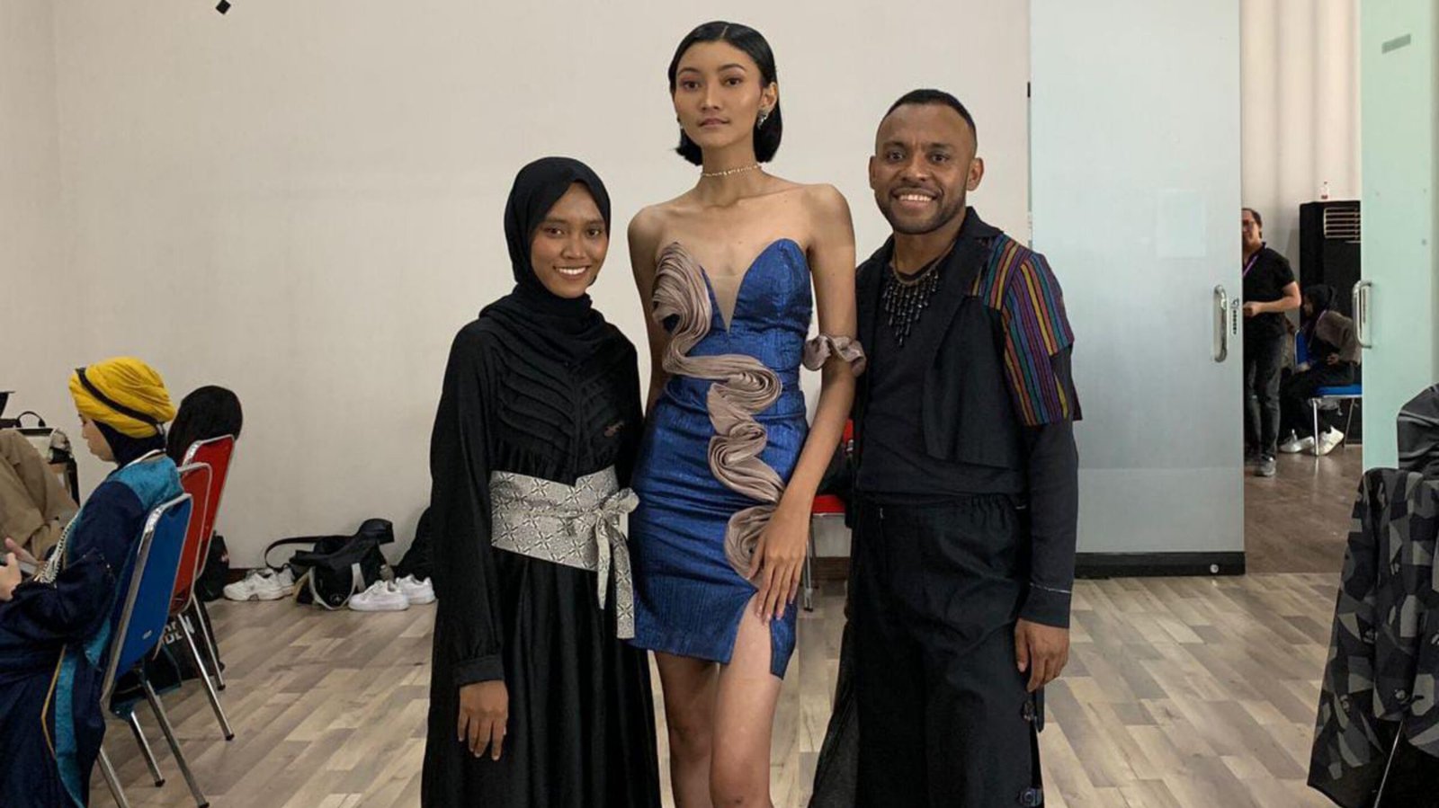 Alfreds Rumbekwan (Kanan) dan Aurel (Kiri) saat menunjukan hasil desain dress yang dipakai oleh model dalam Semarang Fashion Trend. Foto: Istimewa For Sasagupapua.com