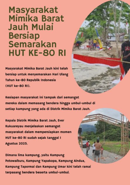 Masyarakat Mimika Barat Jauh kini telah bersiap untuk menyemarakan Hari Ulang Tahun ke-80 Republik Indonesia (HUT ke-80 RI).