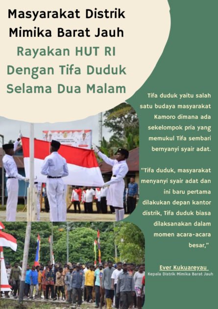 Tak hanya upacara seremonial biasa, masyarakat Mimika Barat Jauh kompak menunjukan rasa nasionalismenya dengan mempersiapkan perayaan HUT RI ke-8.