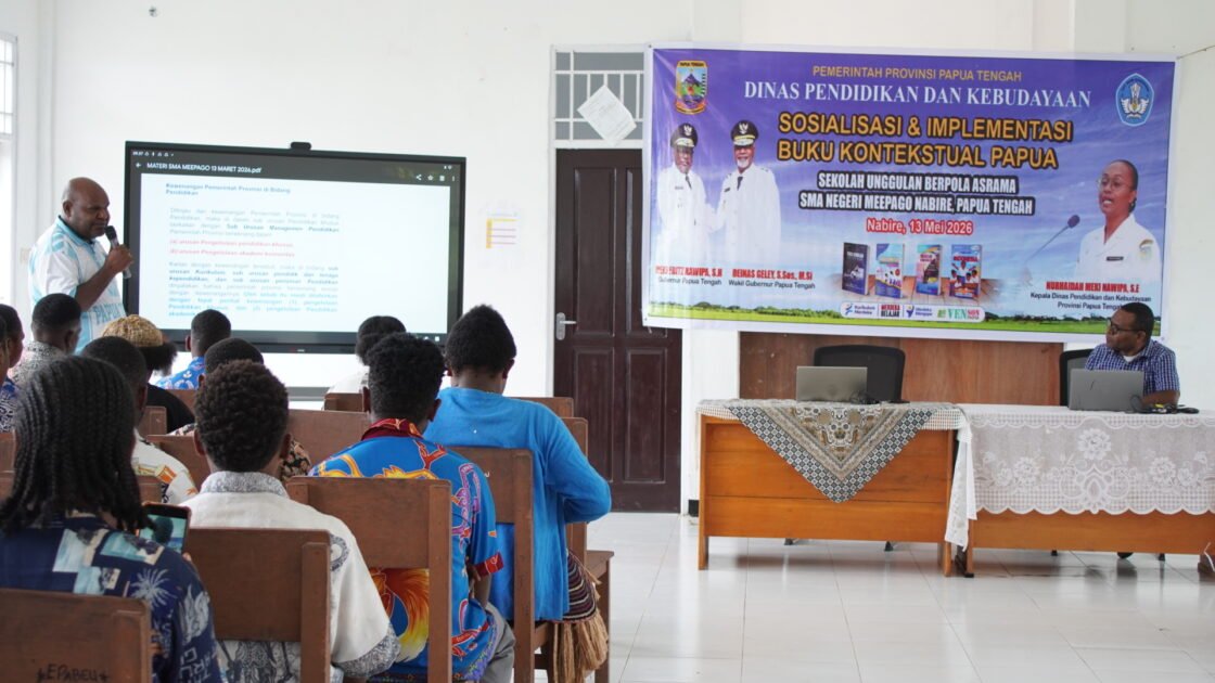 Hal ini dibuktikan dengan digelarnya kegiatan sosialisasi dan implementasi buku pembelajaran kontekstual Papua bagi siswa Sekolah Unggulan Berpola Asrama SMA Negeri Meepago, Nabire yang berlangsung di Aula sekolah tersebut pada Jumat (13/32026).