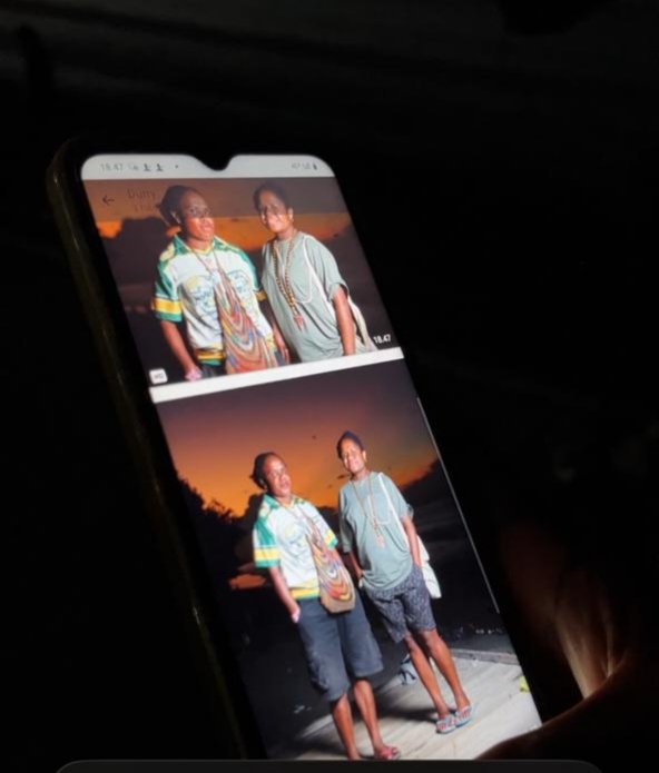 Durry Dogomo saat sedang mentransfer hasil foto ke pelanggan. (Foto: Kristin Rejang/Sasagupapua)