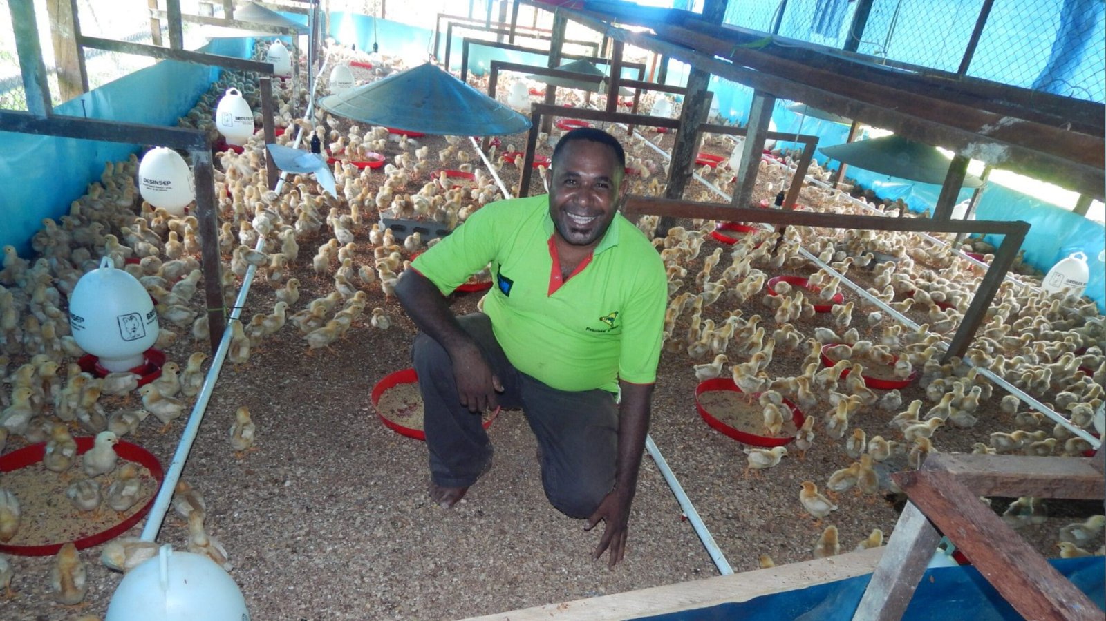 Ferdinand saat melakukan bimbingan pengelolaan usaha ternak ayam petelur pada program PEM suku damal LPMAK. Foto: Istimewa