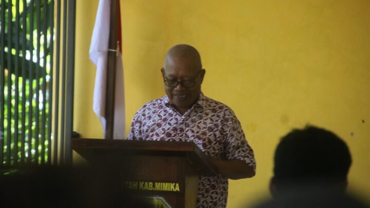 7. Kepala Distrik Iwaka, Linus Dolame saat membawakan sambutan.