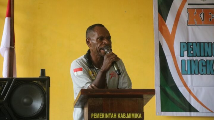 9. Kapolsek Kuala Kencana, Iptu Stefanus Yimsi saat membawakan sambutan.