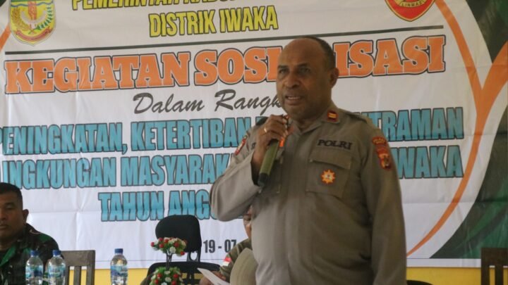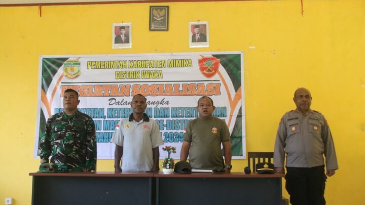 DISTRIK Iwaka, Kabupaten Mimika, Provinsi Papua Tengah menggelar kegiatan Sosialisasi Peningkatan Ketertiban dan Ketentraman Lingkungan Masyarakat (Linmas) se-Distrik Iwaka.