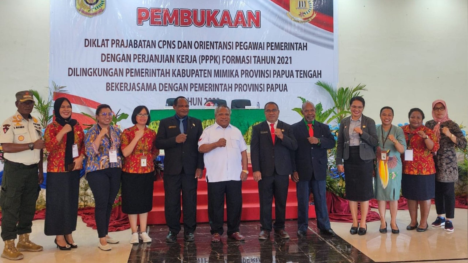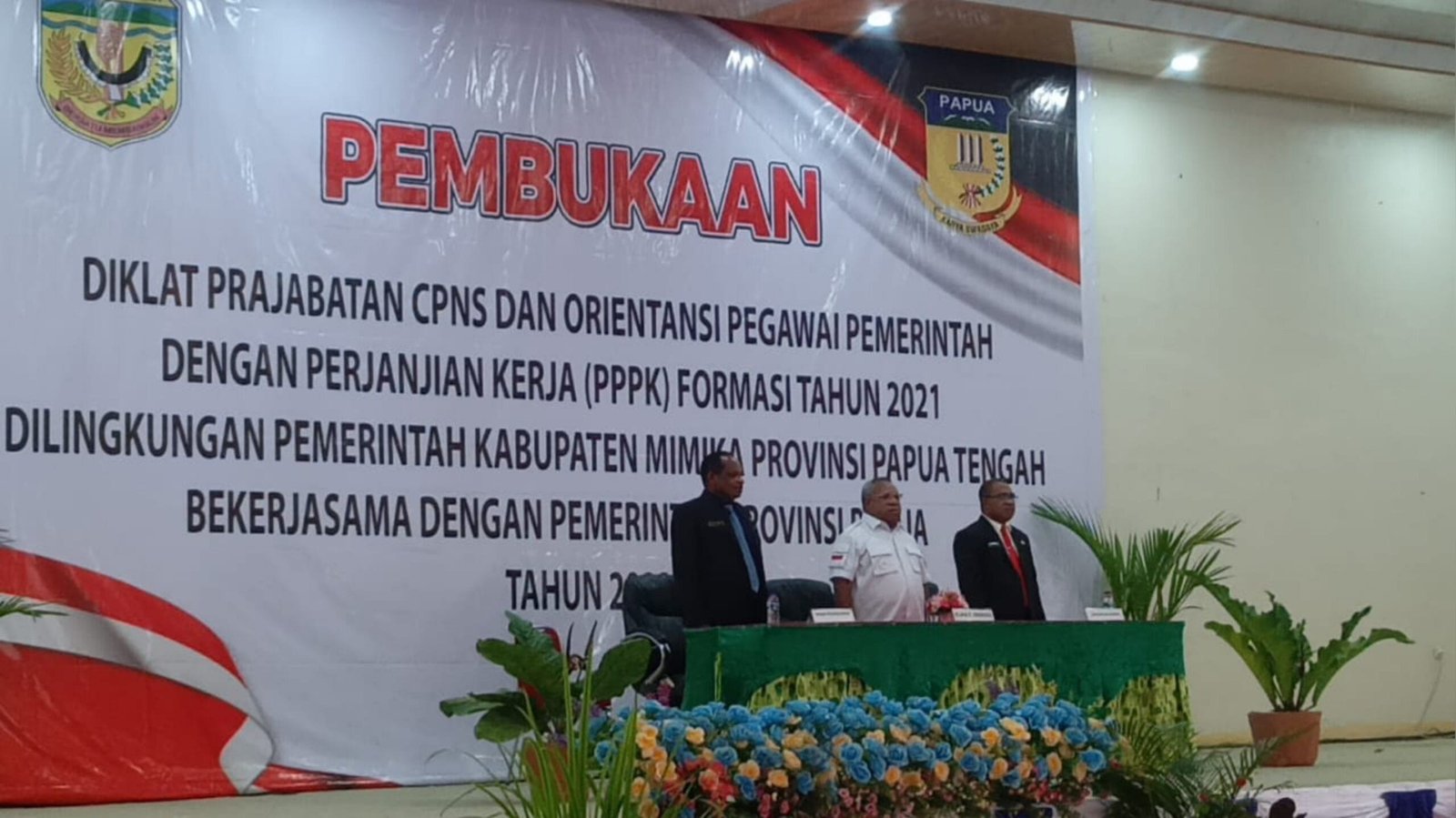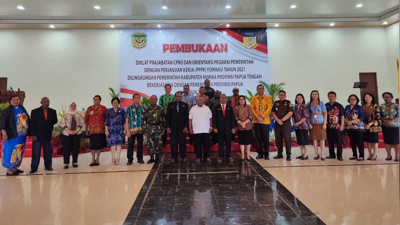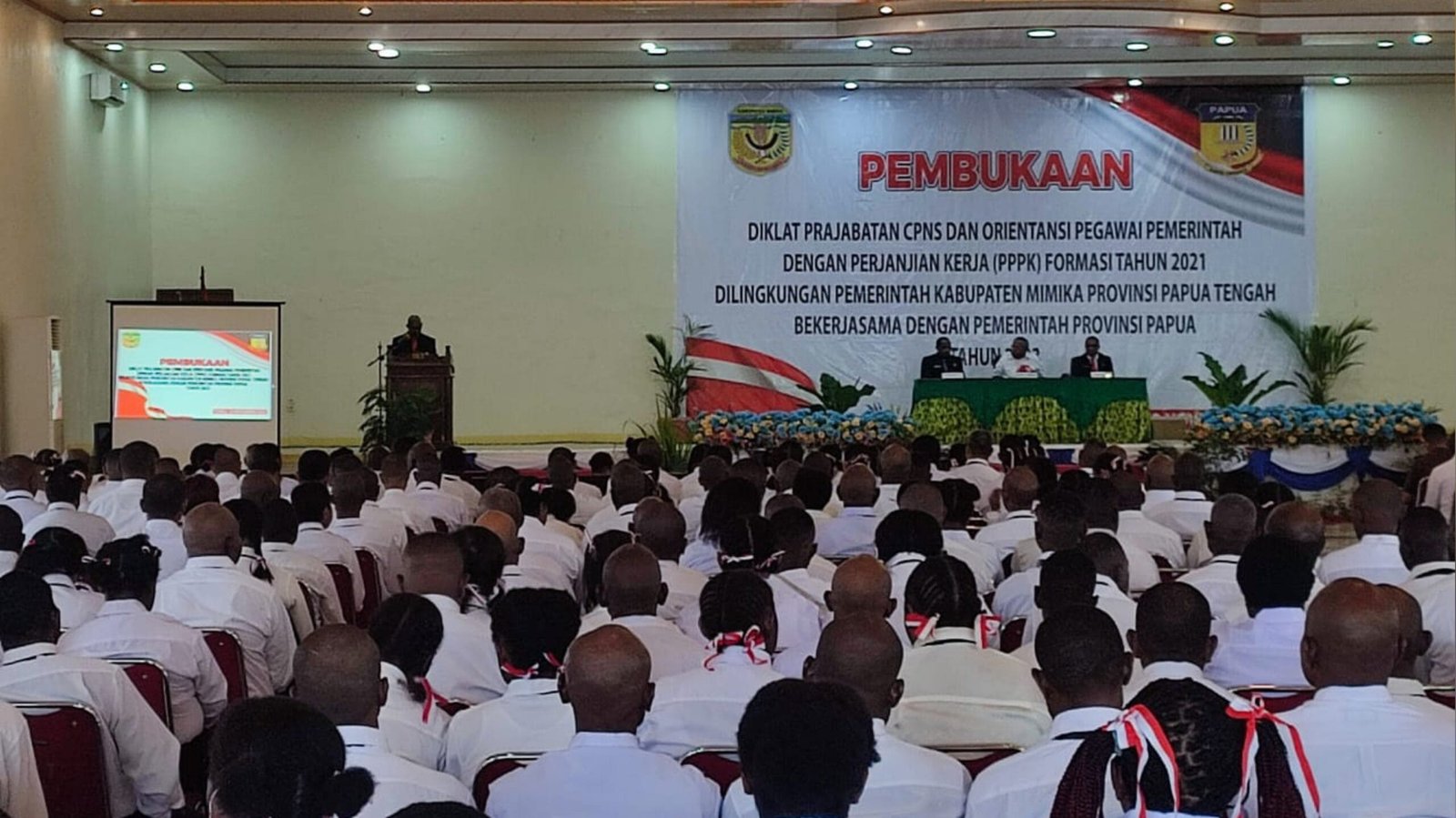 SEBANYAK 498 Calon Pegawai Negeri Sipil (CPNS) dan Pegawai Pemerintah Dengan Perjanjian Kerja (PPPK) Formasi Tahun 2021 mengikuti Pendidikan dan Pelatihan prajabatan CPNS dan Orientasi dilingkungan Pemerintahan Kabupaten Mimika Bekerjasama Dengan Pemerintah Provinsi Papua.