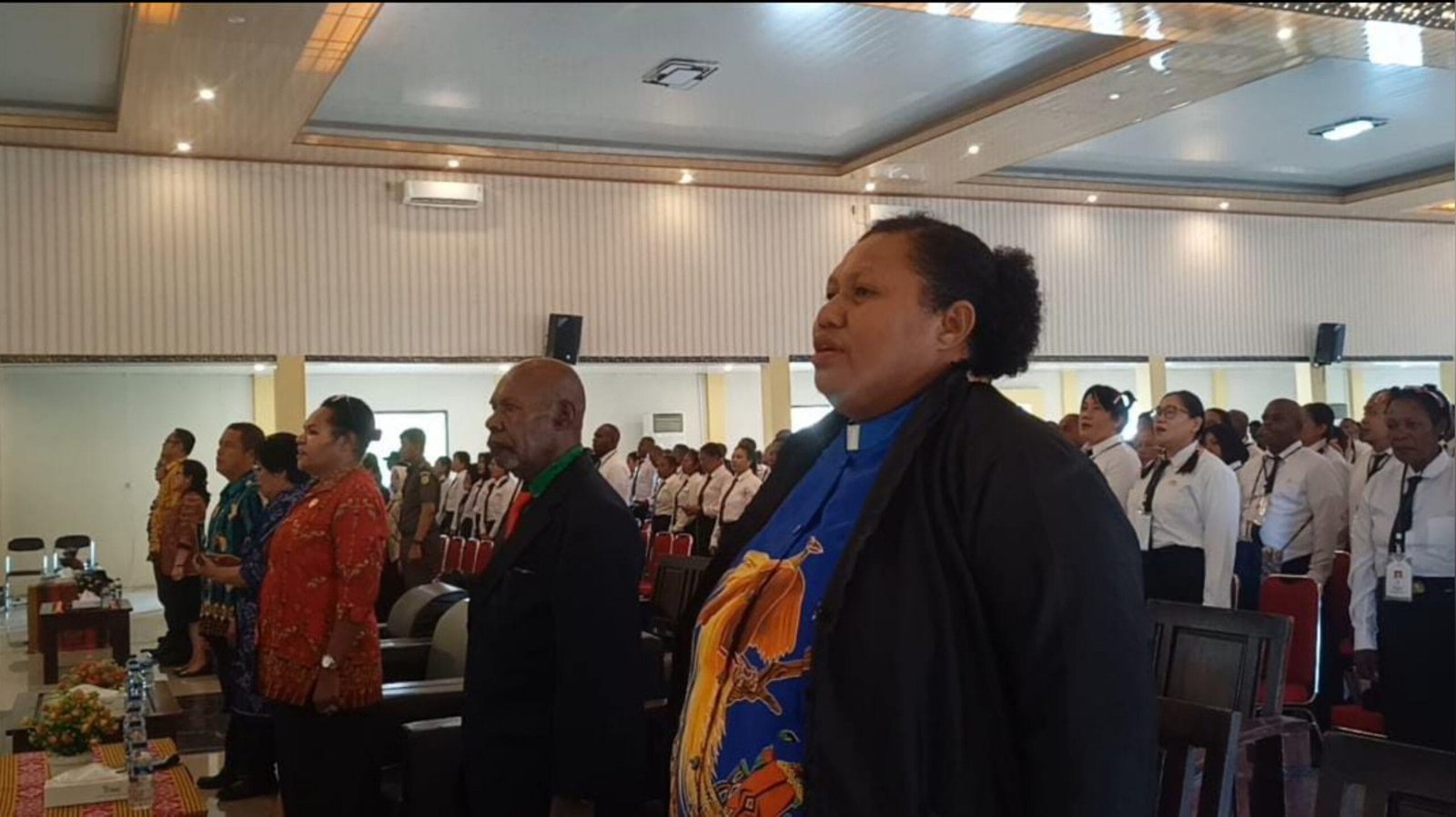 6. Para tamu saat menyanyikan lagu Tanah Papua.
