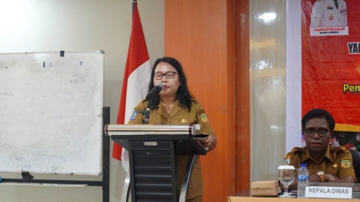 4. Sambutan sekaligus arahan dari Kepala Dinas Pariwisata, Kebudayaan dan Olahraga Kabupaten Mimika, Elisabeth Cenawatin.