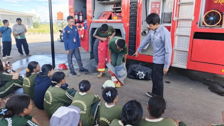 5. Para siswa SMP Pengharapan belajar menggunakan APD Pemadam Kebakaran.