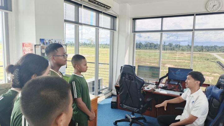 9. Para siswa saat mendengarkan penjelasan dari seorang pegawai AirNav Indonesia Cabang Nabire.