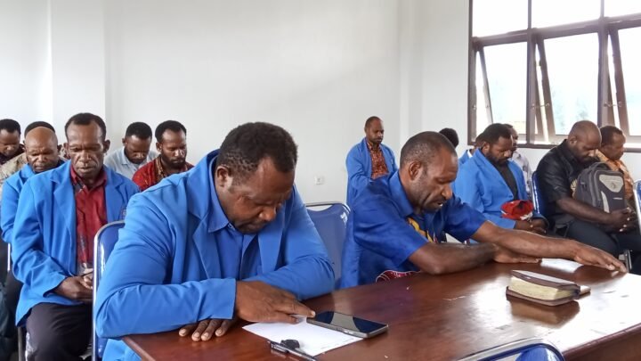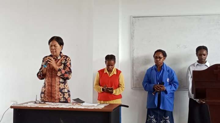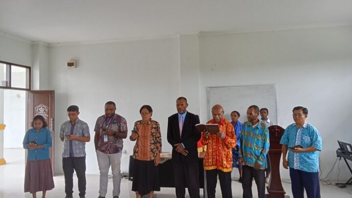 SASAGUPAPUA.COM, TIMIKA – Mengakhiri ujian semester, keluarga besar Sekolah Tinggi Teologi (STT) Russell Timika menggelar doa bersama.