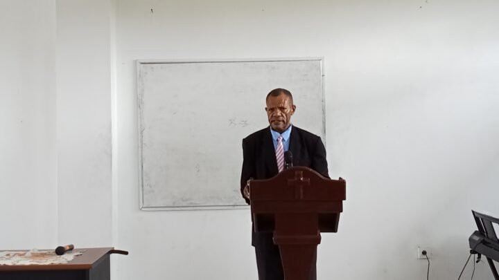 4.Ketua STT Russell Timika, Dr. Henok Bagau, M.Th saat membawakan firman.