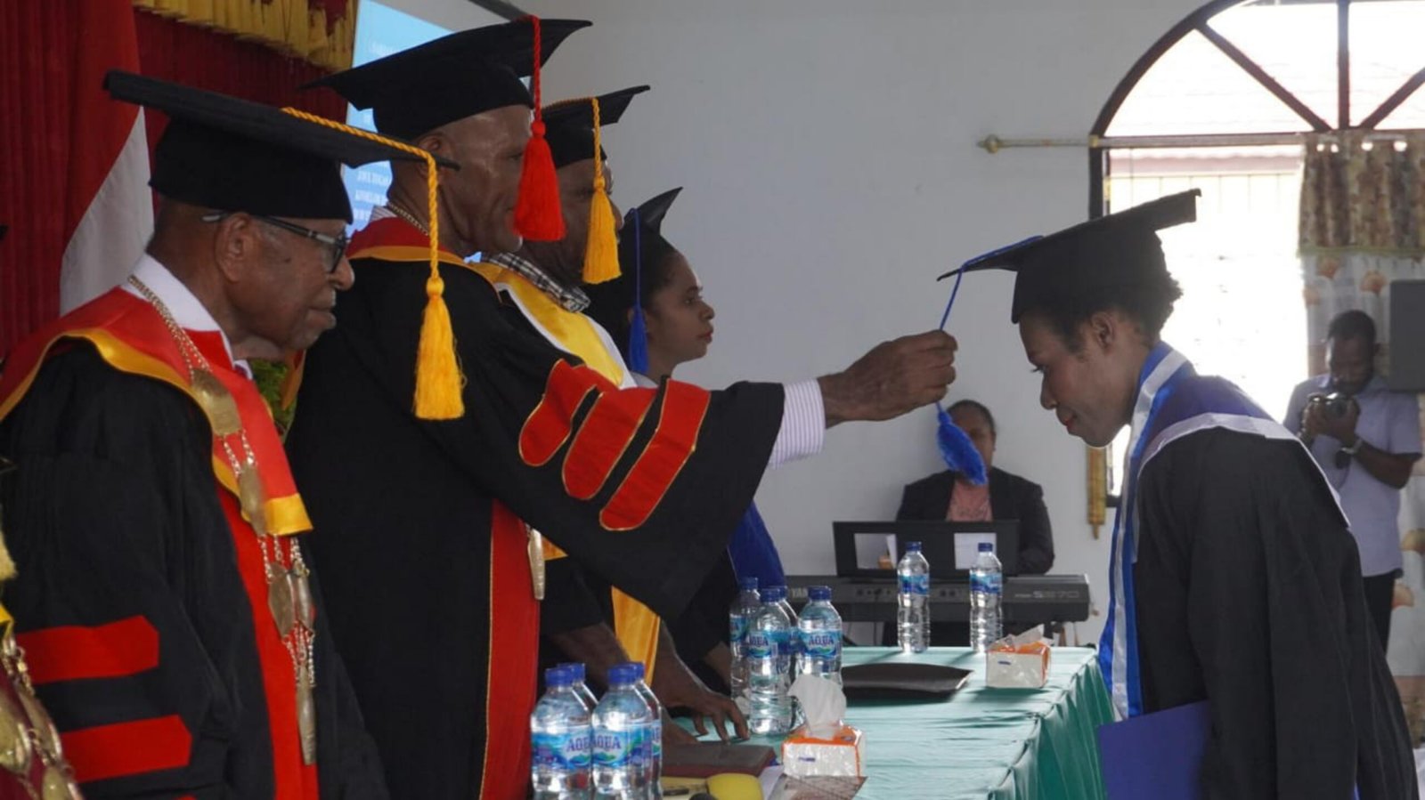 Acara wisuda diawali dengan ibadah bersama kemudian dilakukan orasi ilmiah oleh Ketua STT Russell Timika, Dr. Henok Bagau, M.Th dengan judul ‘Jadilah Hamba Yang Setia’ dengan mengutip ayat alkitab Matius 24:45-51.