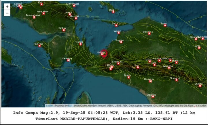 SASAGUPAPUA.COM, NABIRE – Badan Meteorologi Geofisika dan Klimatologi Nabire melaporkan hingga kini sudah tiga kali gempa susulan, Jumat (19/9/2025).