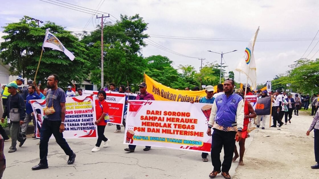 - Dari Sorong Sampai Merauke Menolak Dengan Tegas Proyek Strategis Nasional (PSN) Yaitu Tebu, Sawit Dan Pembangunan Batalion Yang Mendatangkan Militer Di Atas Tanah Papua.