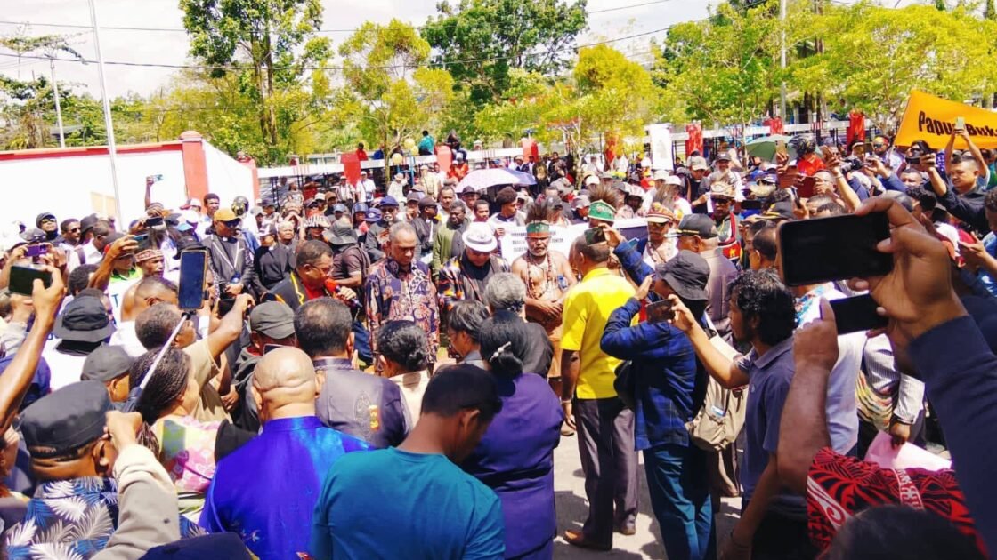 SASAGUPAPUA.COM, BIAK — Matahari di Pulau Biak terasa lebih menyengat pada Rabu, 4 Februari 2026. Di depan kantor DPRK Biak Numfor, ratusan masyarakat yang terdiri dari orang dewasa hingga anak-anak berdiri kokoh. Mereka tidak datang untuk berpesta, melainkan membawa kegelisahan yang telah lama mengerak: ancaman hilangnya tanah adat akibat Proyek Strategis Nasional (PSN) dan bayang-bayang militerisme.