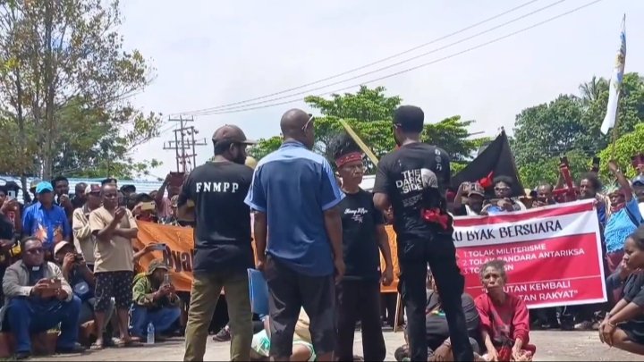 “Orang Papua mau bicara bahwa Papua bukan tanah kosong! Papua bukan tanah kosong! Papua bukan tanah kosong!” teriak Pdt. Jhon yang disambut seruan setuju dari ratusan peserta aksi.