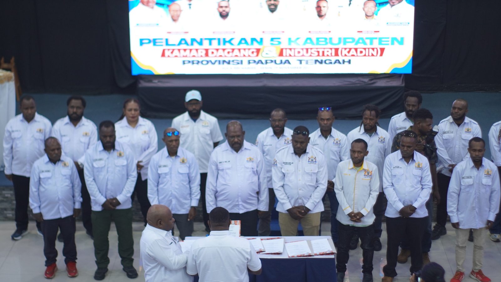 SASAGUPAPUA, Papua Tengah – Pengurus dan anggota Kamar Dagang dan Industri (Kadin) dari lima kabupaten di Papua Tengah —Dogiyai, Deiyai, Intan Jaya, Paniai, dan Puncak— resmi dilantik dalam sebuah acara yang berlangsung di aula RRI Papua Tengah pada Senin (17/11/2025).