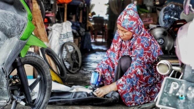 Hj. Khairi sosok ibu yang pandai membagi waktu antara pekerjaan rumah dan bengkel.