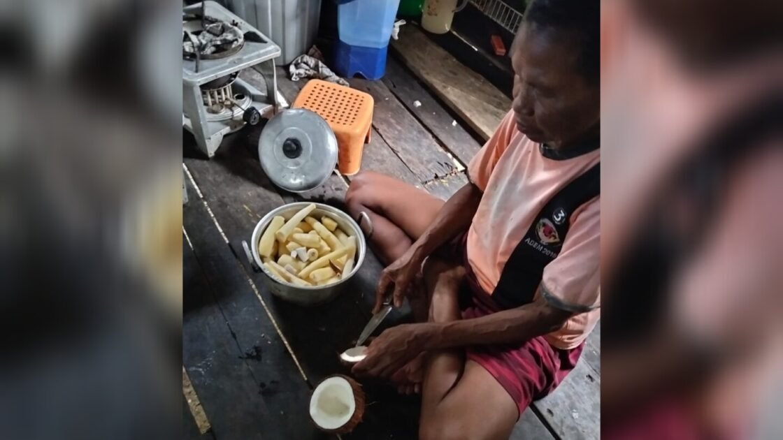 Seorang ibu yang hanya makan singkong dan kelapa karena ruang gerak warga terhimpit. (Foto: Istimewa)