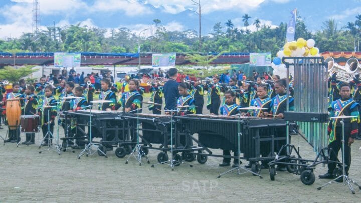 Segerombolan anak-anak asli Papua yang diketahui total 93 anak, terlihat menunjukan kebolehan mereka. Mulai dari Field Comannder, ada yang bisa meniup trompet, mellophone, menambuh snare, bass, bahkan lihai memainkan Marimba dan alat musik lainnya semua dilakukan oleh anak-anak hebat tersebut.
