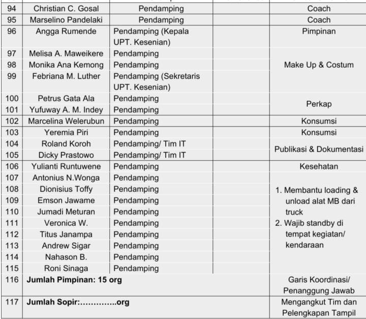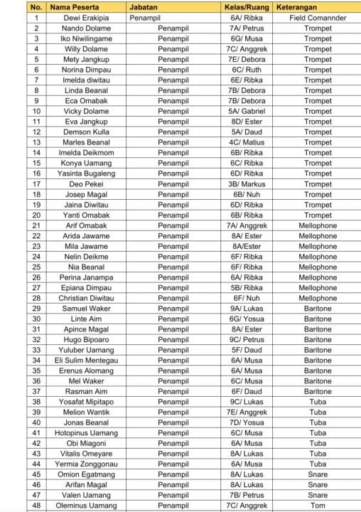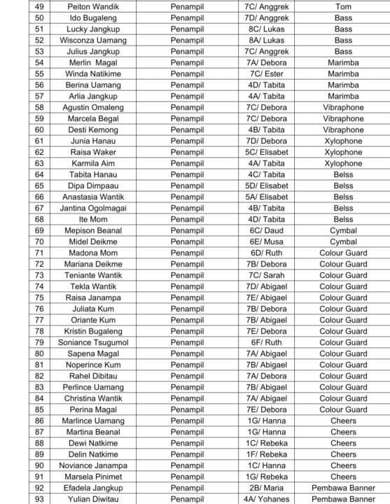 Berikut nama Tim Penampil Symphony Amor Marching Band yang 100 persen anak adat Kabupaten Mimika.