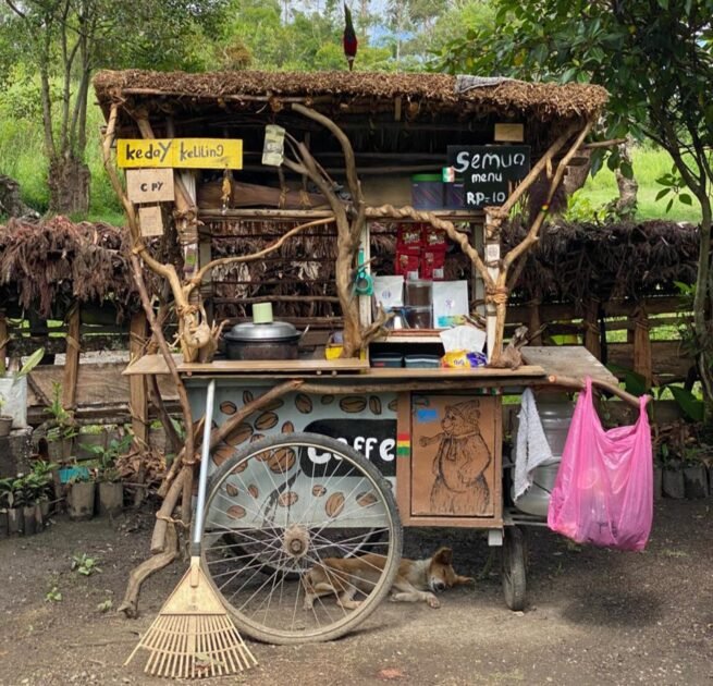 Namanya Agustinus Wetipo, namun ia lebih akrab disapa Tinus. Di tangannya, sebuah gerobak kopi unik dengan desain menyatu dengan alam menjadi sumber penghidupan sekaligus simbol perlawanan terhadap keterbatasan.