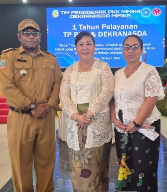 SASAGUPAPUA.COM, Timika – Momen penuh khidmat mewarnai pelantikan Ketua Tim Penggerak Pemberdayaan Kesejahteraan Keluarga (TP-PKK) Distrik se-Kabupaten Mimika yang berlangsung pada Senin, (20/4/2025) di Gedung Eme Neme Yauware.