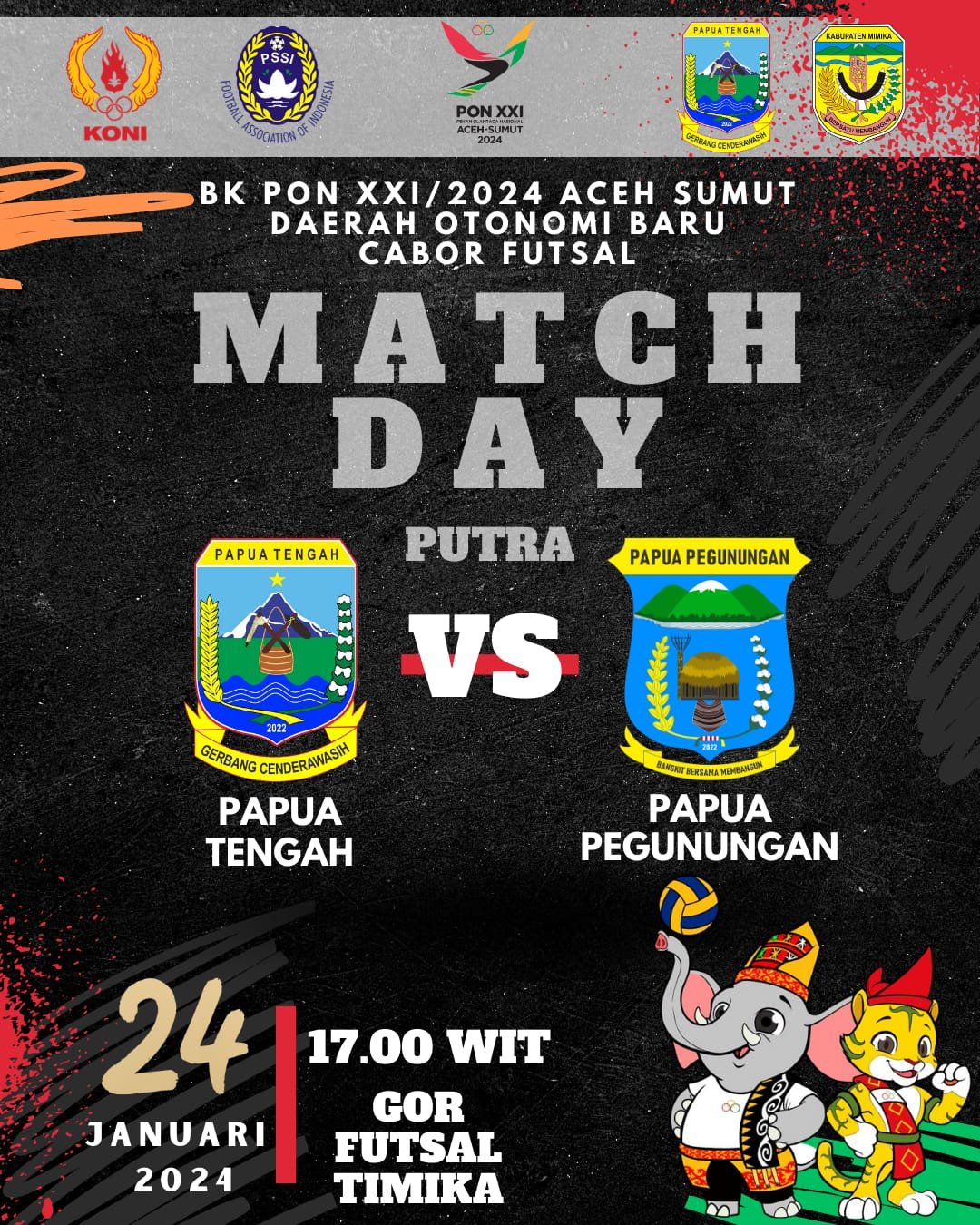 Direktur Kompetisi PSSI, Albinus Laurent yang didampingi Ketua Panitia Cabor Futsal Natex Bugaleng dalam konferensi pers Rabu (24/1/2023) menjelaskan pada pembukaan tim futsal putra Papua Tengah akan berhadapan dengan Papua pegunungan.