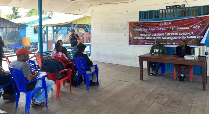 KOMISI Pemilihan Umum (KPU) Kabupaten Mimika, Provinsi Papua Tengah menggelar monitoring ke Distrik Mimika Barat dan Mimika Tengah, Jumat (19/7/2024). Kegiatan di lakukan dalam rangka Monitoring dan Evaluasi Pelaksanaan Coklit. Rombongan yang menggunakan Speed Boat itu dipimpin langsung oleh Ketua KPU Date Abugau. Untuk wilayah Mimika Barat, mereka berkunjung ke Kokonao, sementara Wilayah Mimika Tengah, mereka berkunjung ke Kampung Atuka.