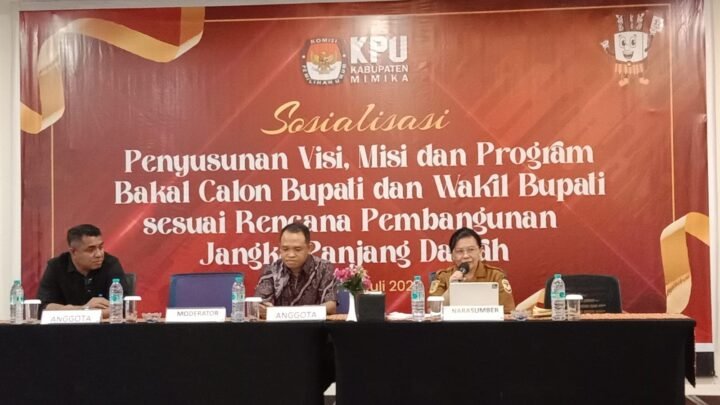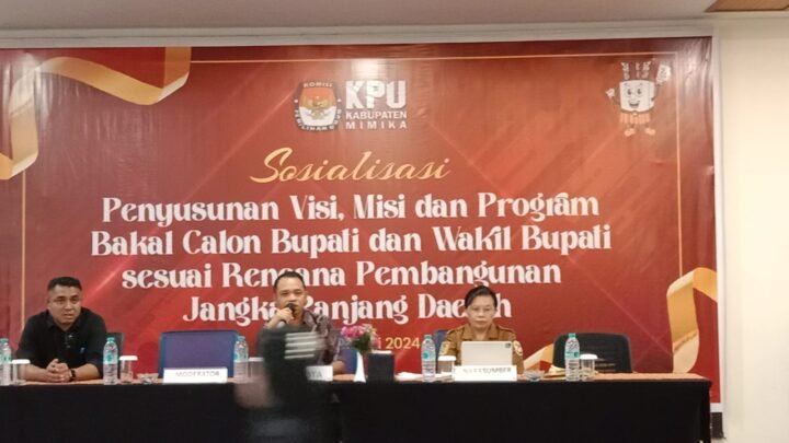 KOMISI Pemilihan Umum (KPU) Kabupaten Mimika, Provinsi Papua Tengah terus memberikan sosialisasi terkait pencalonan kepada pada Partai Politik yang akan mengusung kandidat mereka pada Pemilihan Kepala Daerah (Pilkada) Kabupaten Mimika 2024.