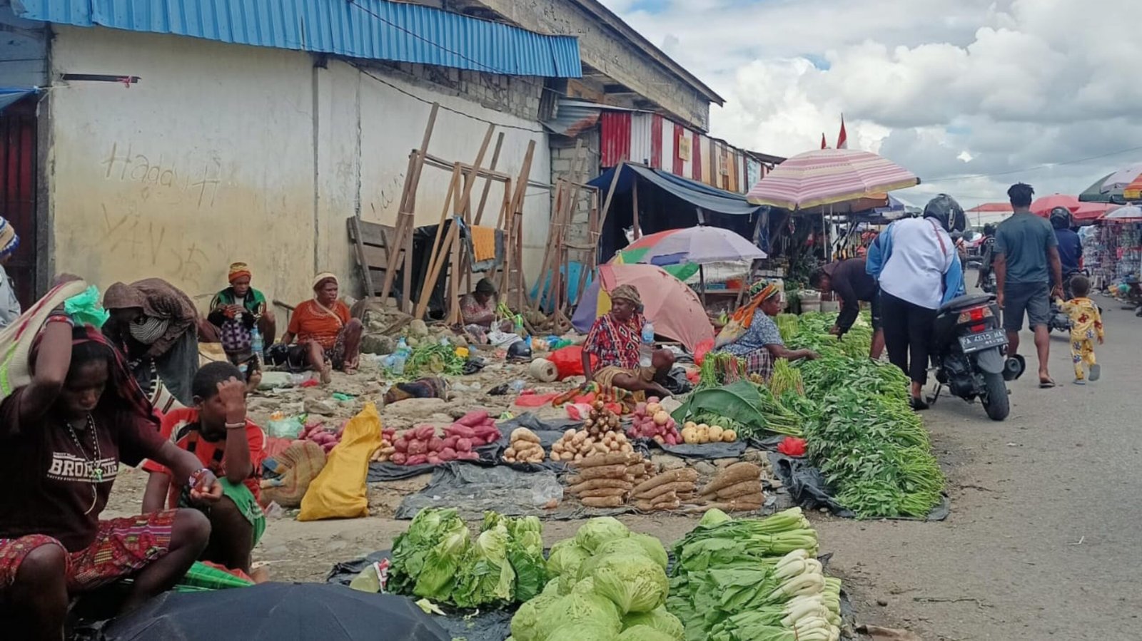 Aktifitas para pedagang lokal di Eks Pasar Swadaya Kabupaten Mimika.