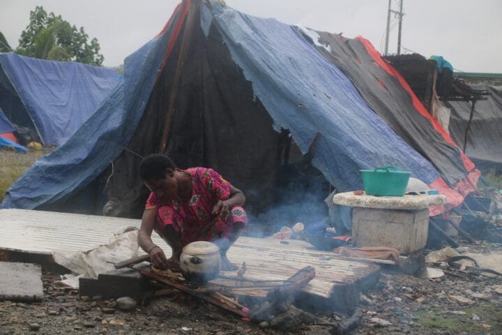 Seorang Mama asli Kamoro terlihat sedang memasak di depan Bivak. (Foto: Kristin Rejang/Sasagupapua.com)
