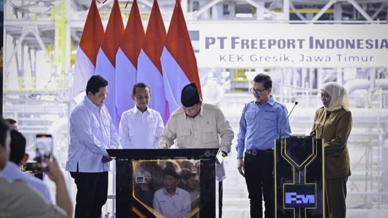 Presiden Prabowo Subianto meresmikan pabrik pemurnian logam mulia atau precious metal refinery (PMR) PT Freeport Indonesia (PTFI) di kawasan PTFI, Kabupaten Gresik, Provinsi Jawa Timur, pada Senin, 17 Maret 2025. (Foto: BPMI Setpres)