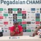 Pelatih Kepala Persipura Jayapura (Rahmad Darmawan) bersama Gelandang Persipura (Takuya Matsunaga) saat press conference jelang duel kontra Persela Lamongan. (Foto: Media Officer Persipura)