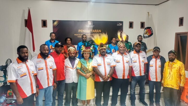 Sasagupapua – Pasangan Calon Bupati dan Wakil Bupati Kabupaten Nduga Periode 2024-2029, Namia Gwijangge,S.Pd,M.Si dan Obed Gwijangge secara resmi mendaftar ke Kantor KPU Kabupaten Nduga.