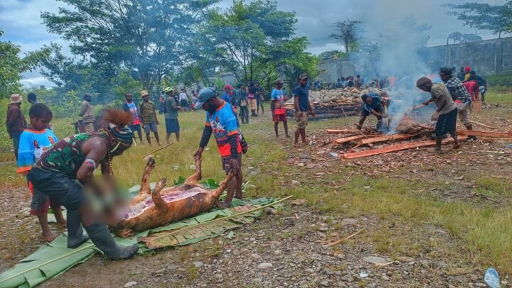2. Para masyarakat Tim Panitia Pendukung melakukan proses Bakar Batu Jelang Pengukuhan Tim dan Proses Pendaftaran.