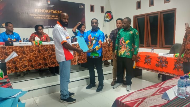 Sasagupapua – Pasangan Calon Bupati dan Wakil Bupati Kabupaten Nduga Periode 2024-2029, Namia Gwijangge,S.Pd,M.Si dan Obed Gwijangge secara resmi mendaftar ke Kantor KPU Kabupaten Nduga.